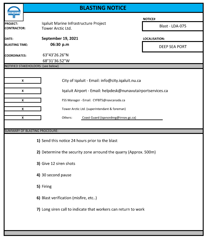 Blast Notice - Deep Sea Port - 2021-09-19